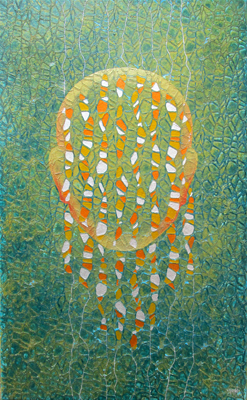 Yogi 2021 Acryl und Objekte auf Leinwand