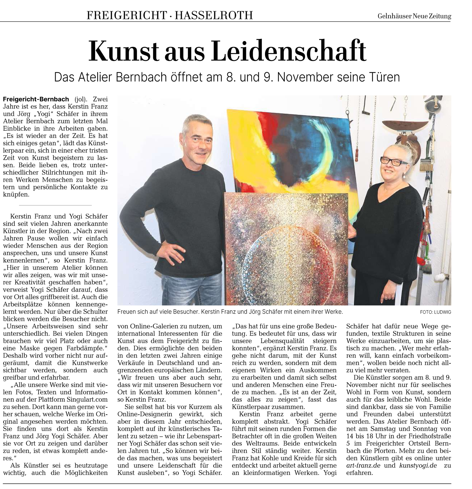 2025 08. + 09.Nov. Offenes Atelierwochenende in unserem atelierbernbach